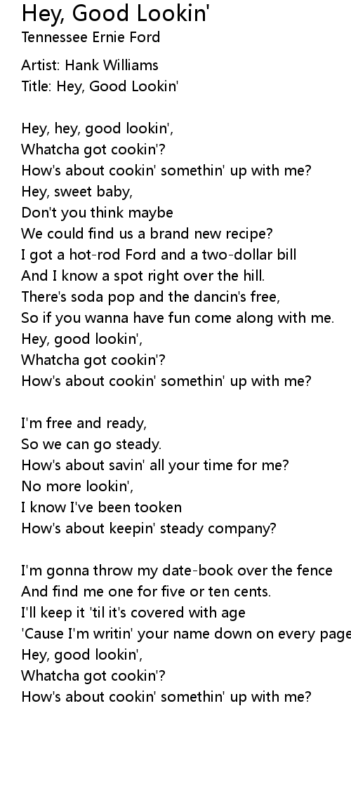 Hey, good lookin', |
