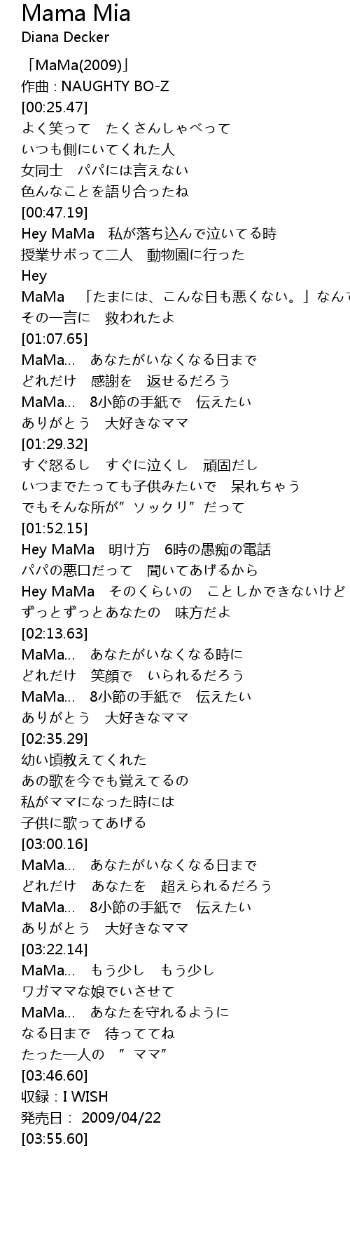 | [03:01.88] | MaMa… あなたがいなくなる日まで |