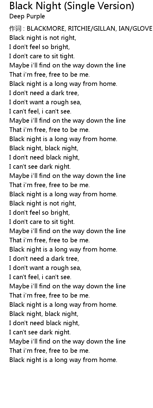 | I don' t need black night, | |