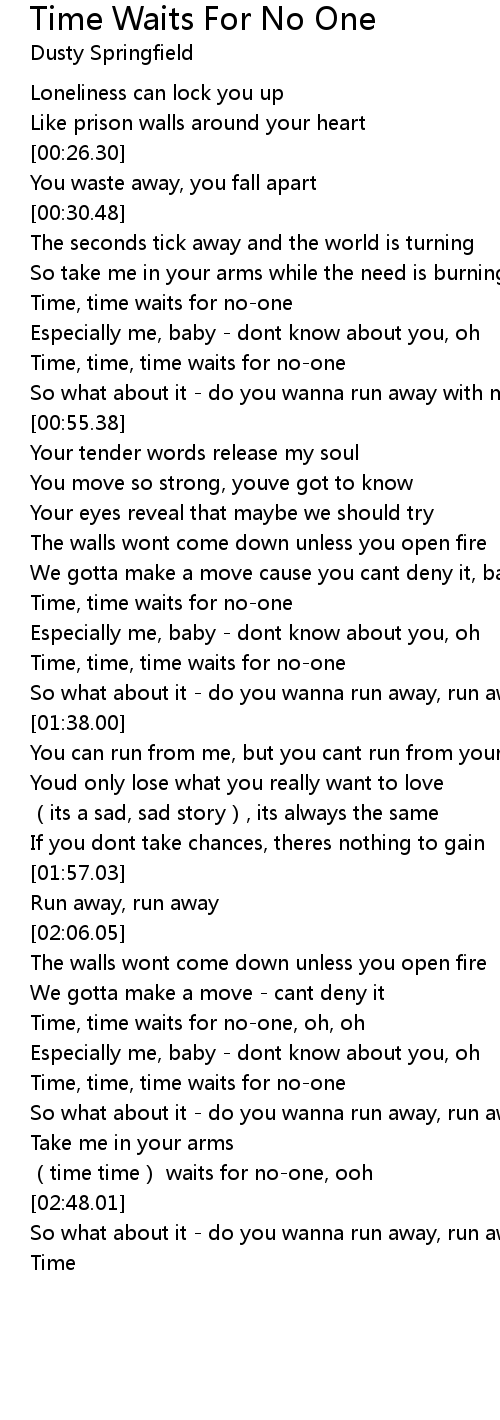| [01:29.81] | Time, time, time waits for no-one |