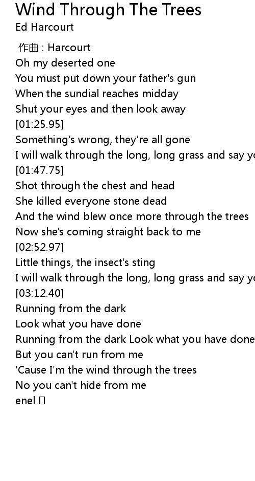 | [03:02.33] | I will walk through the long, long grass and say you're |