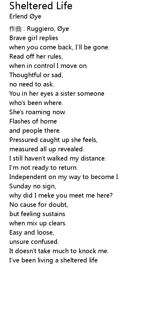 | Song | Sheltered Life |