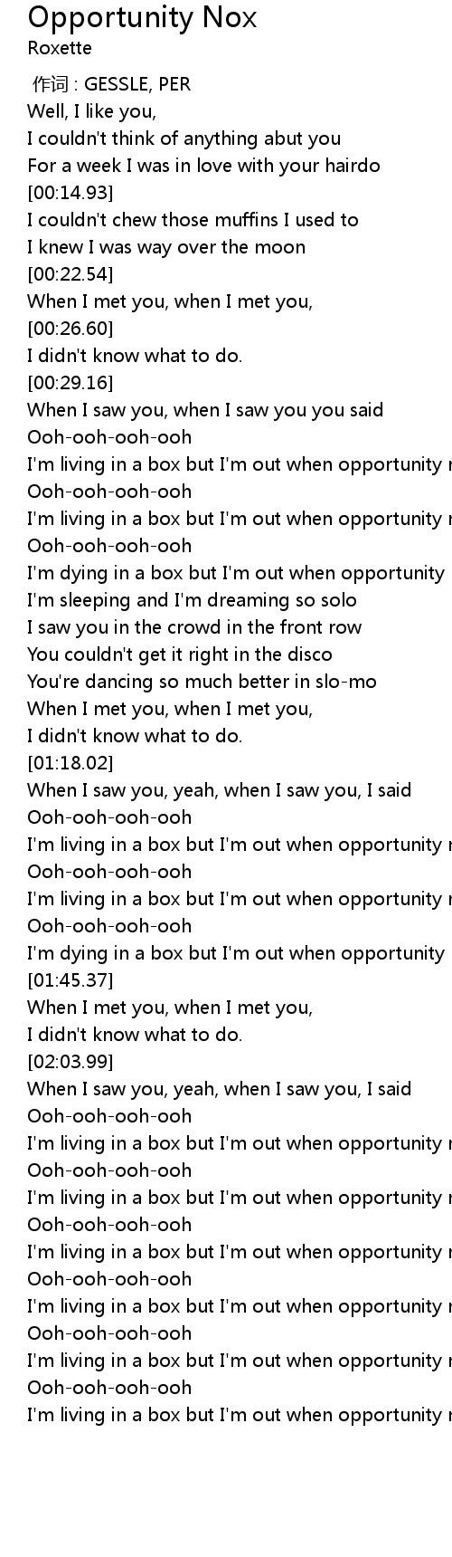 | [00:45.21] | I' m living in a box but I' m out when opportunity nox... |