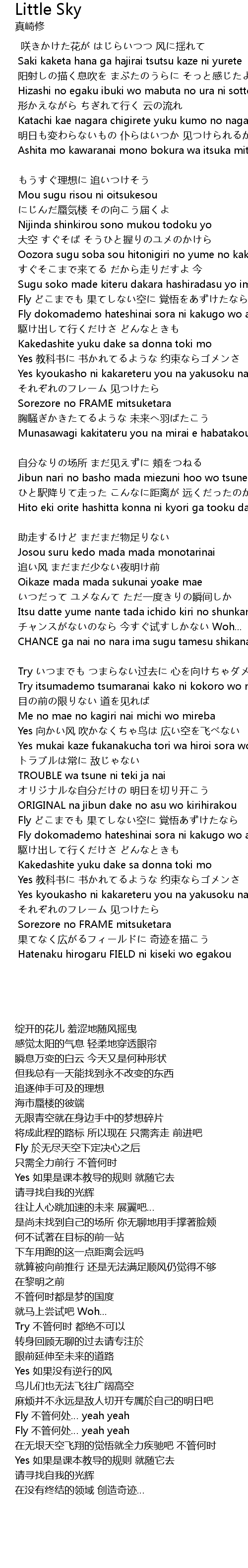 | Fly どこまでも 果てしない空に 覚悟をあずけたなら | |