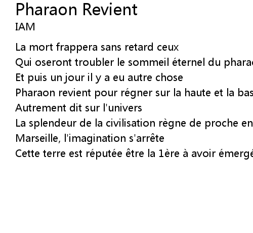 | Song | Pharaon Revient |