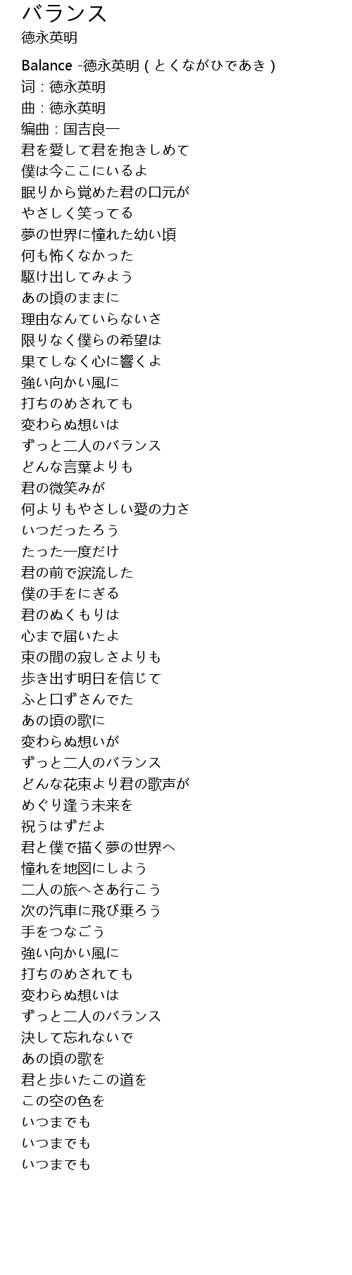 | [00:00.69] | Balance -徳永英明(とくながひであき) |
