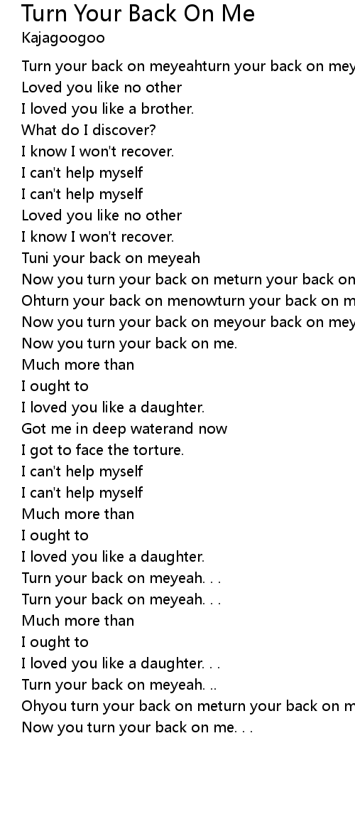 Now you turn your back on meyour back on meyour back on me |