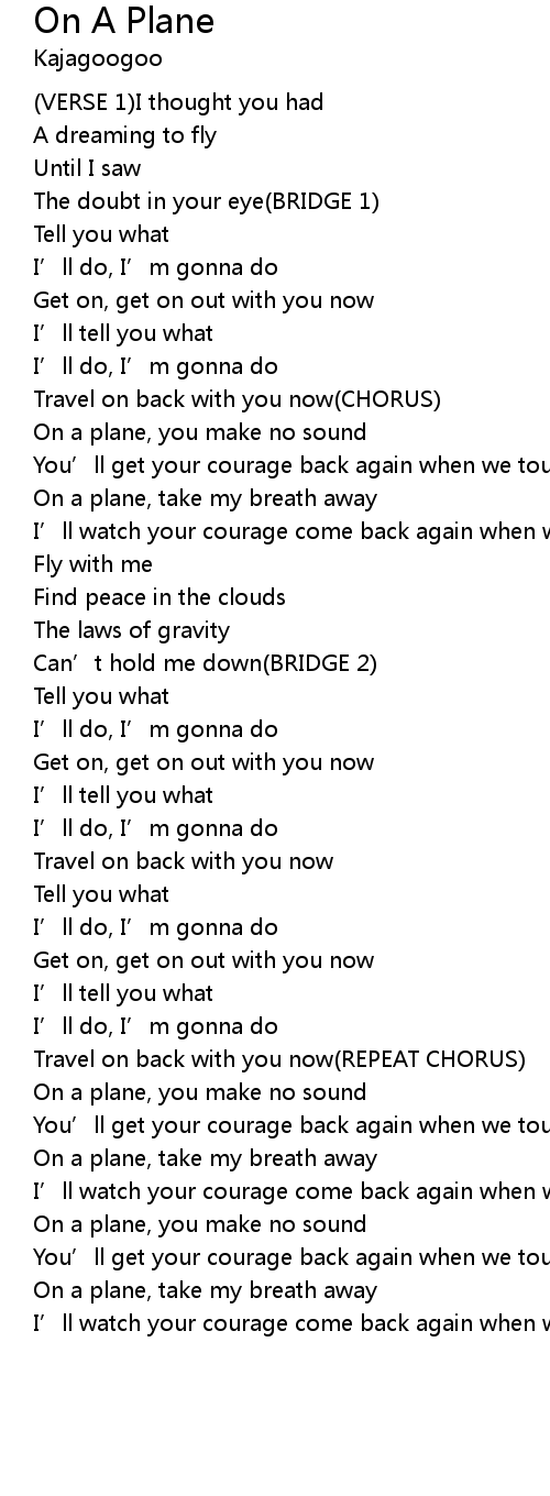 | I' ll watch your courage come back again when we touch down FINAL CHORUS | |