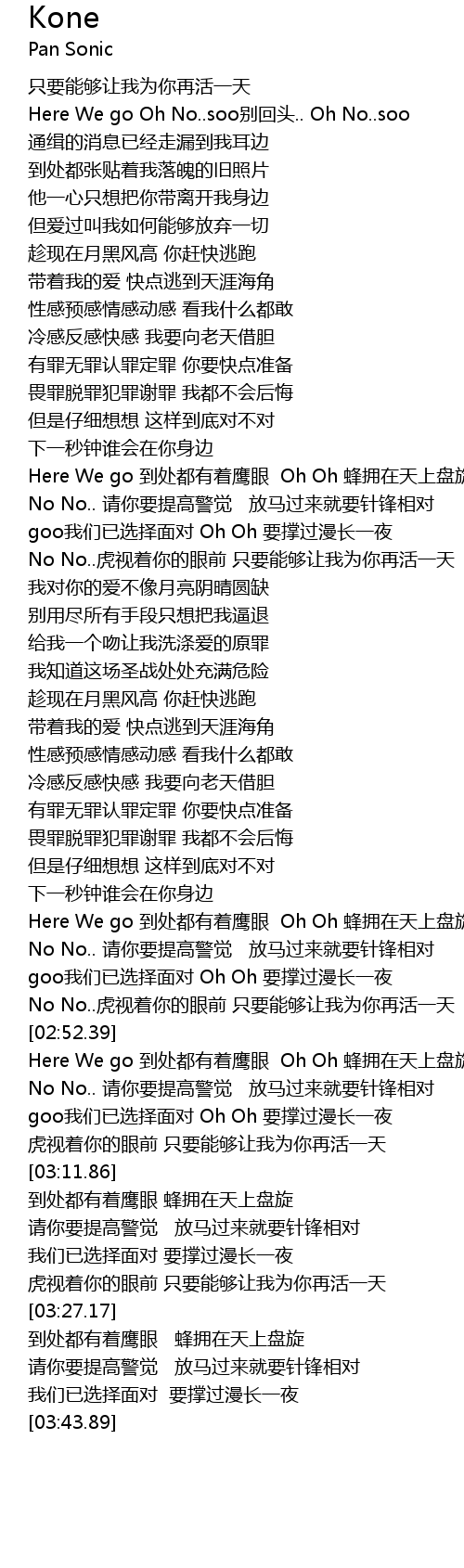 | [00:46.35] | Here We go Oh No.. soo bié huí tóu.. Oh No.. soo |