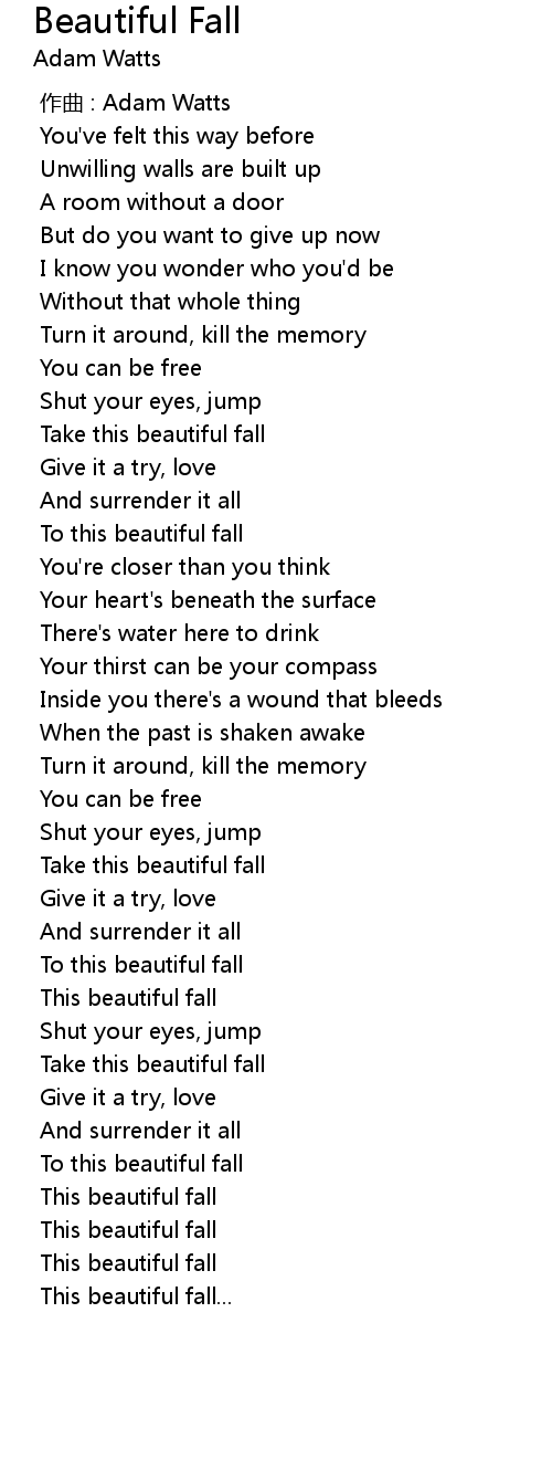 | [00:00.000] | zuò qǔ : Adam Watts |