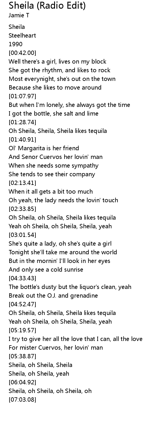| [04:52.75] | Oh Sheila, oh Sheila, Sheila likes tequila |