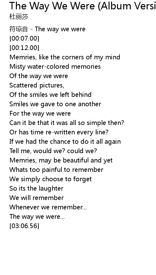 | [00:38.54] | Of the way we were |