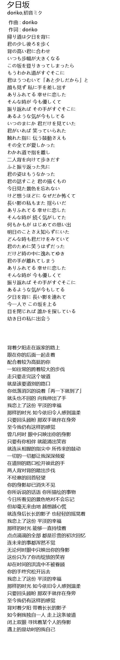 | [05:04.090] | 夕日を背に 長い影を連れて |