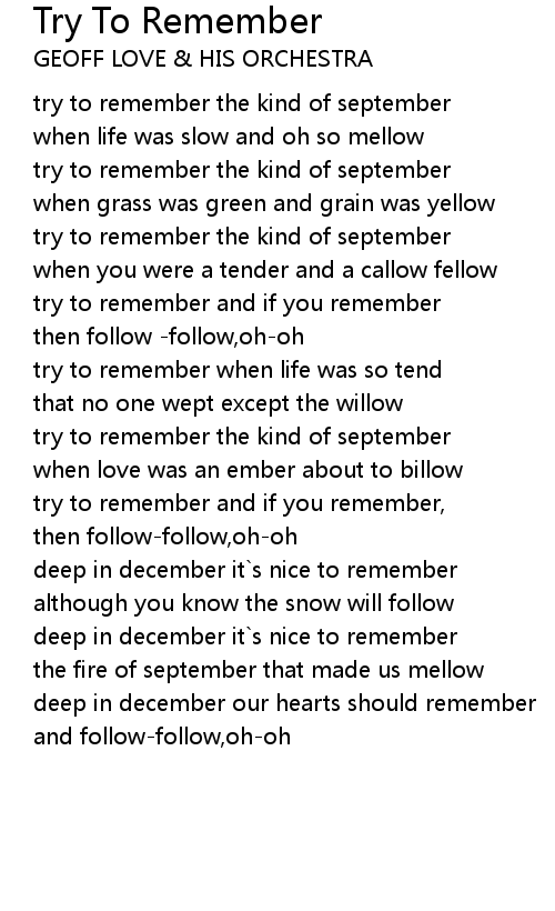 Try To Remember Lyrics