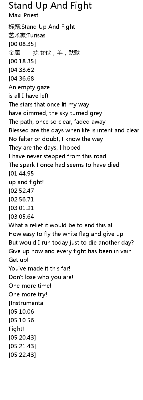 | [00:00.00] | 标题:Stand Up And Fight |