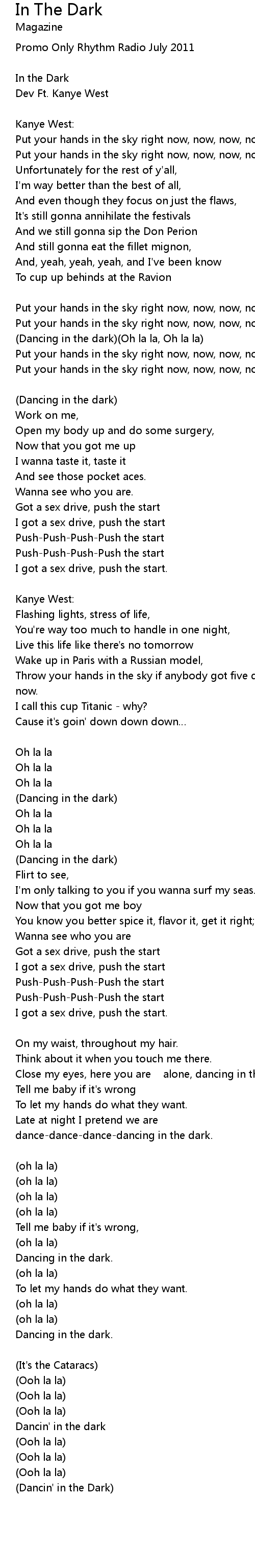 | (Dancing in the dark)(Oh la la, Oh la la) | |