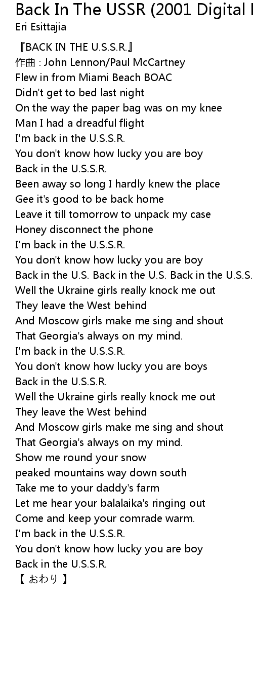 | I' m back in the U. S. S. R. | |