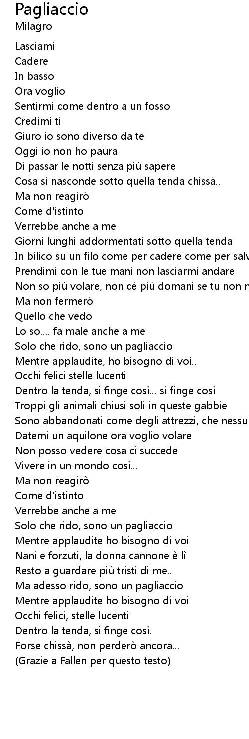 | Non so più volare, non cè più domani se tu non mi aspetti...cadrò. | |