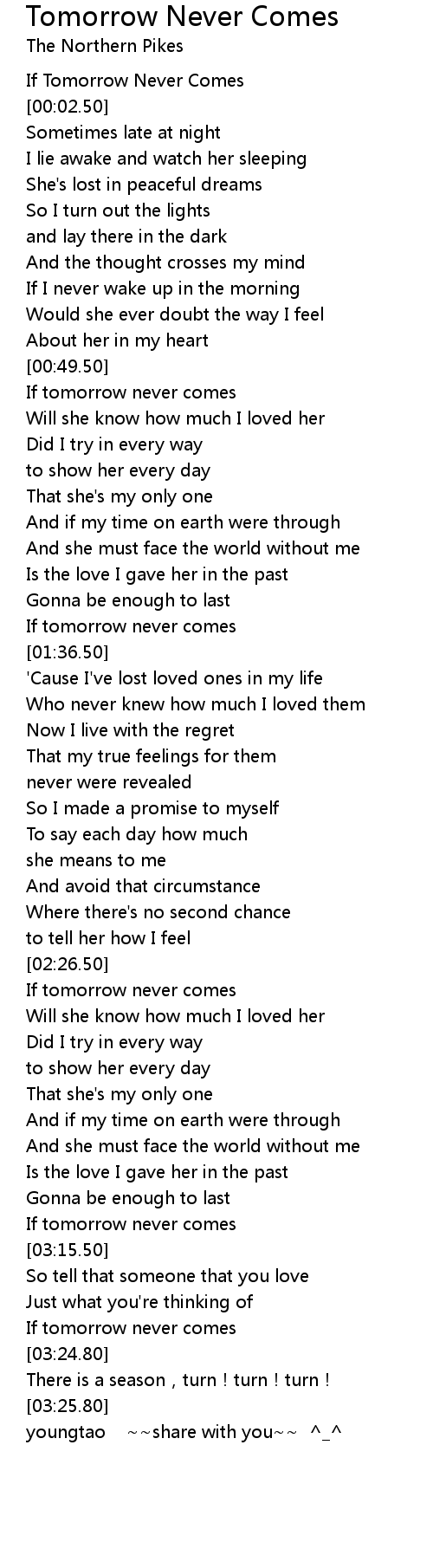 | [00:52.50] | If tomorrow never comes |