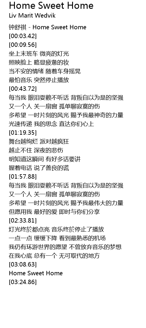 | [00:01.12] | zhong shu qi Home Sweet Home |