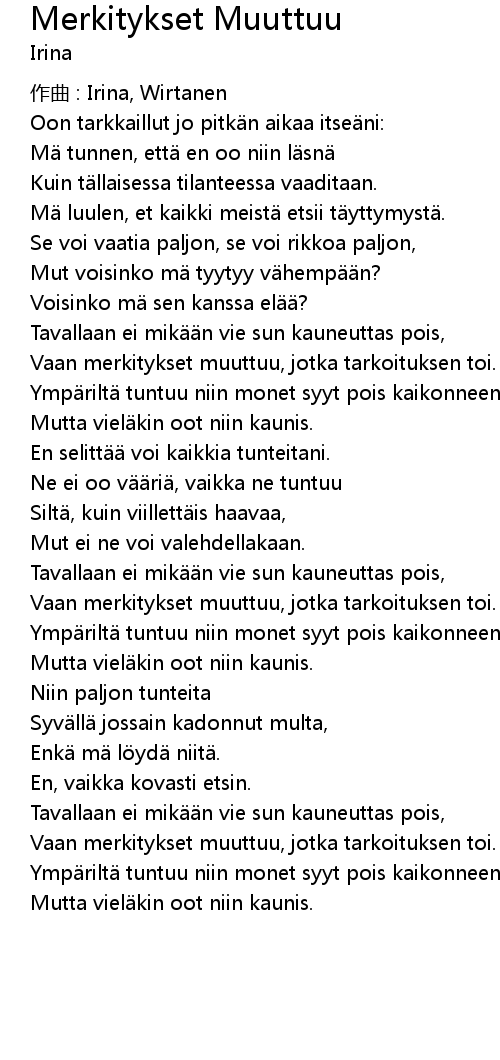| Ymp rilt tuntuu niin monet syyt pois kaikonneen, | |