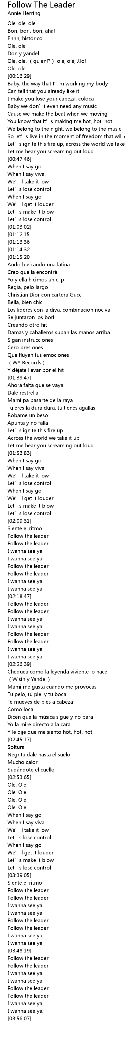 | [01:17.28][01:13.36][01:09.57][01:05.50] | follow the leader, |