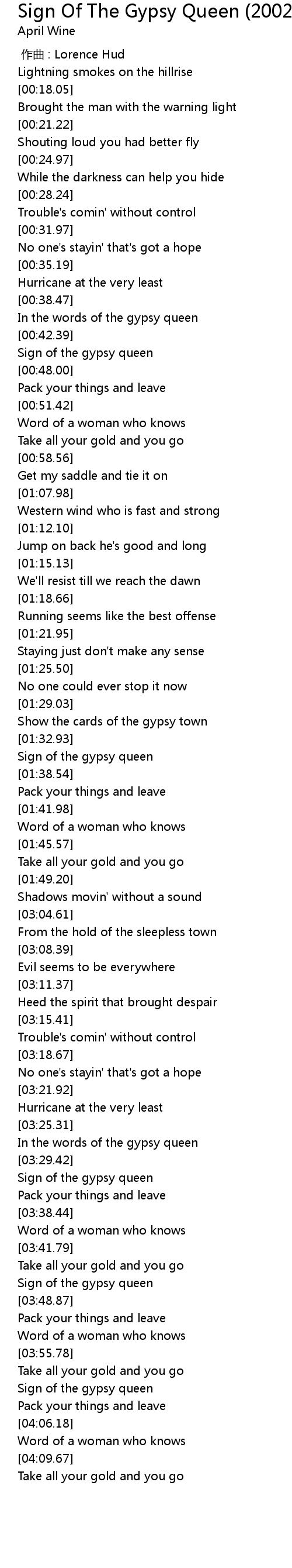 | [03:45.79] | Sign of the gypsy queen |