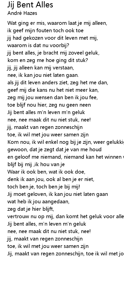 Jij bent alles m'n leven m'n geluk |