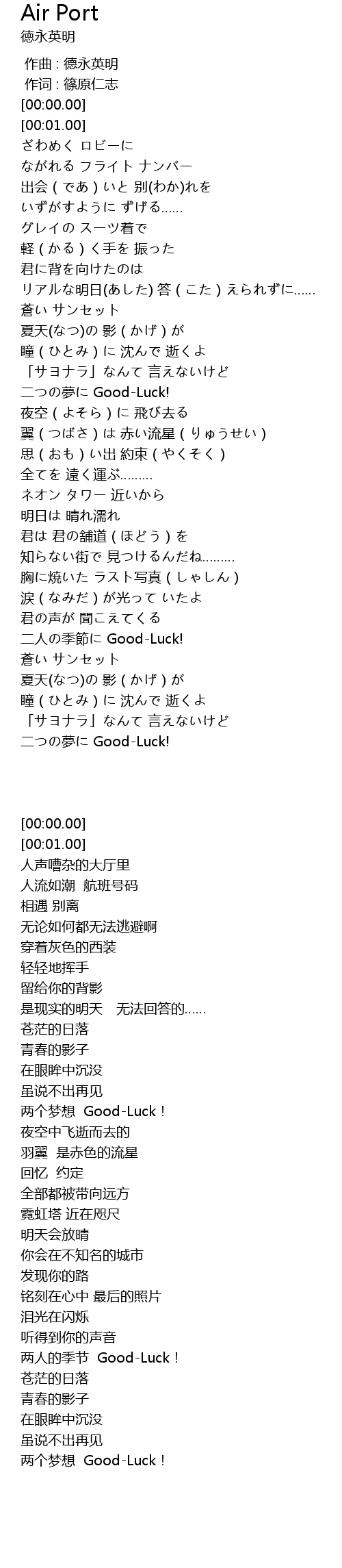 | [03:00.59] | 二人の季節に Good-Luck! |