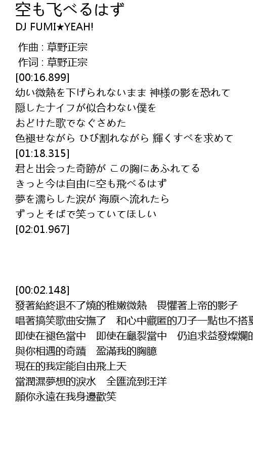 | [01:28.726] | きっと今は自由に空も飛べるはず |