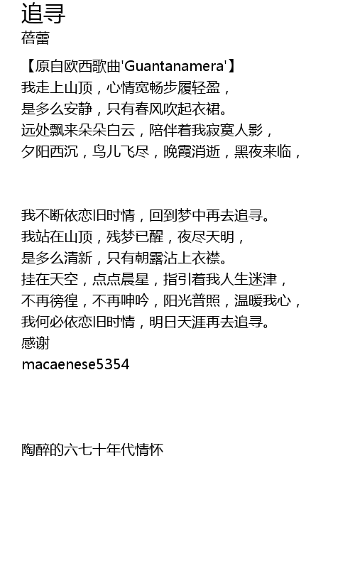 | 【原自欧西歌曲'Guantanamera'】 | |