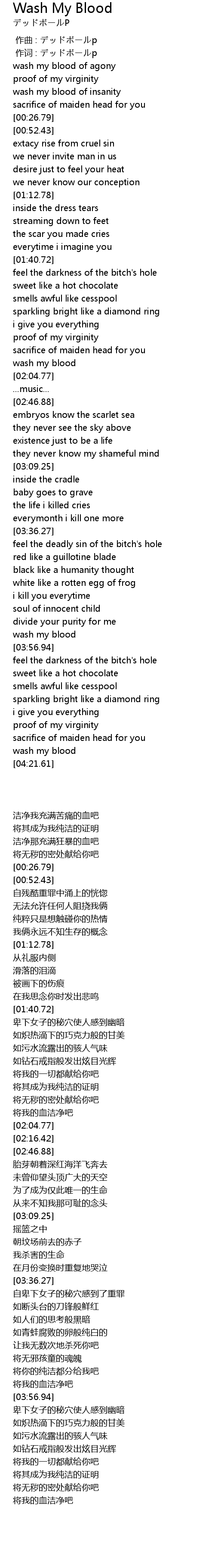 | [01:41.42] | feel the darkness of the bitch' s hole |