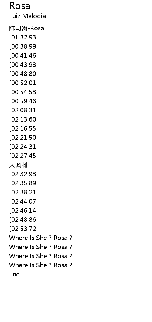 | [03:39.30][02:32.93] | zhǐ zhī dào tā míng zì jiào Rosa |