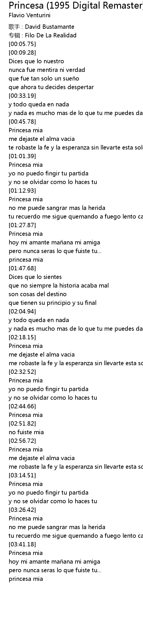 | [03:32.45] | tu recuerdo me sigue quemando a fuego lento cada dia mas |