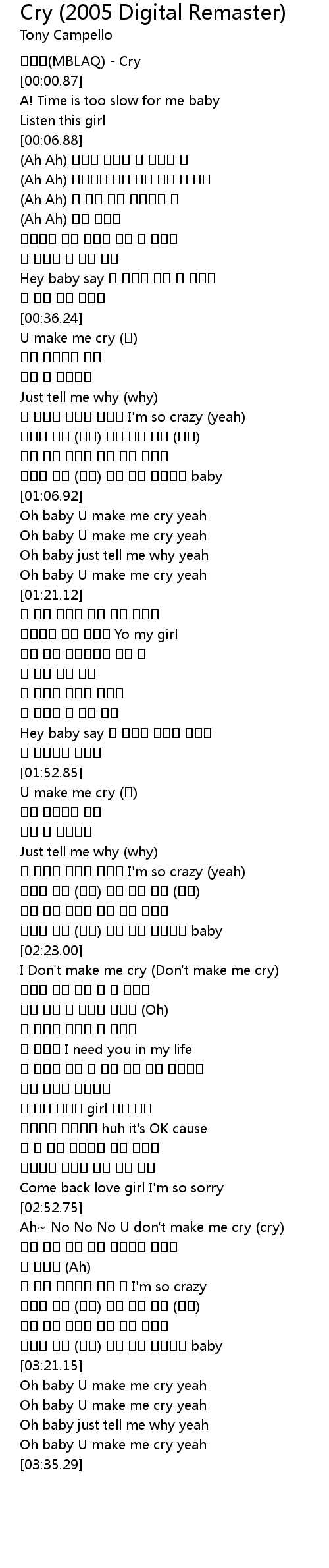 | [03:25.68] | Oh baby U make me cry yeah |