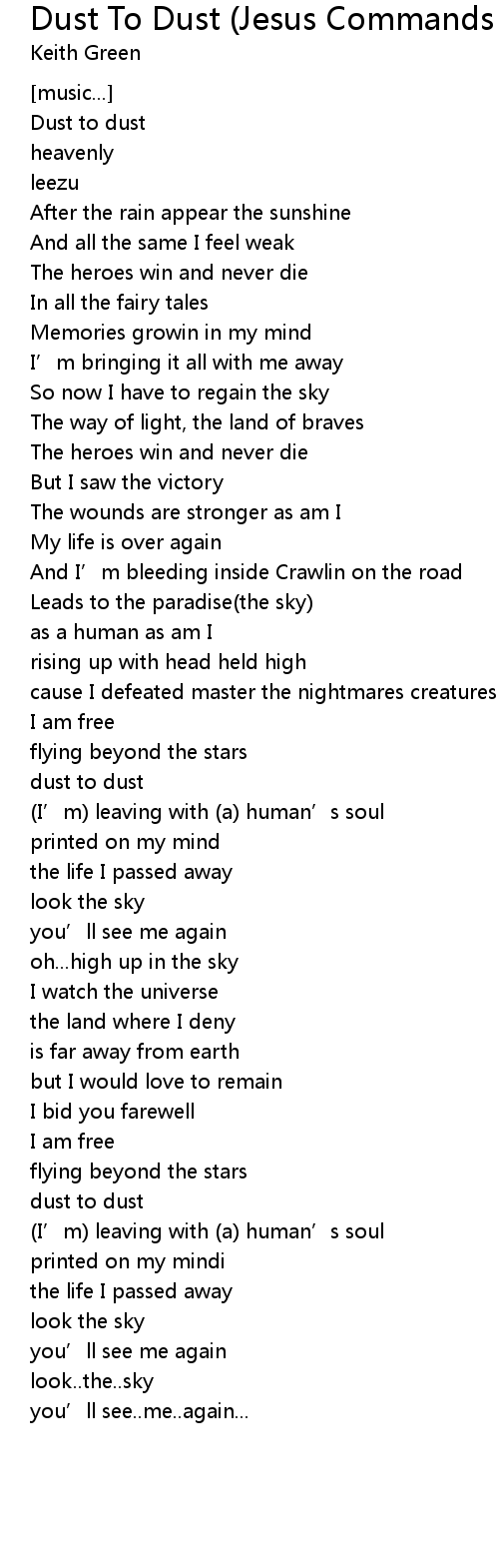 | Song | Dust To Dust (Jesus Commands Us To Go Album Version) |