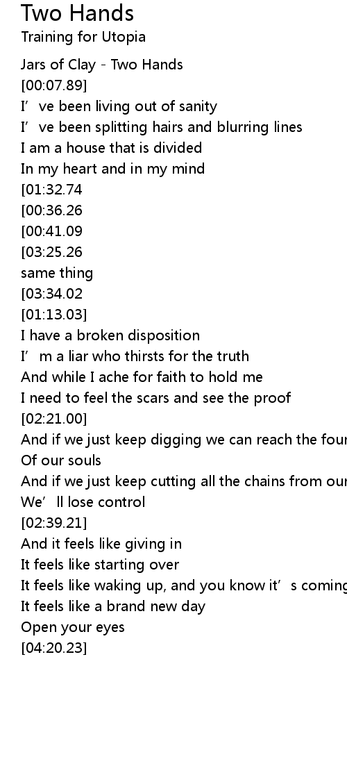 | [03:43.18][03:25.26][02:02.55][01:44.27][00:47.14] | If I had two hands doing the same thing |