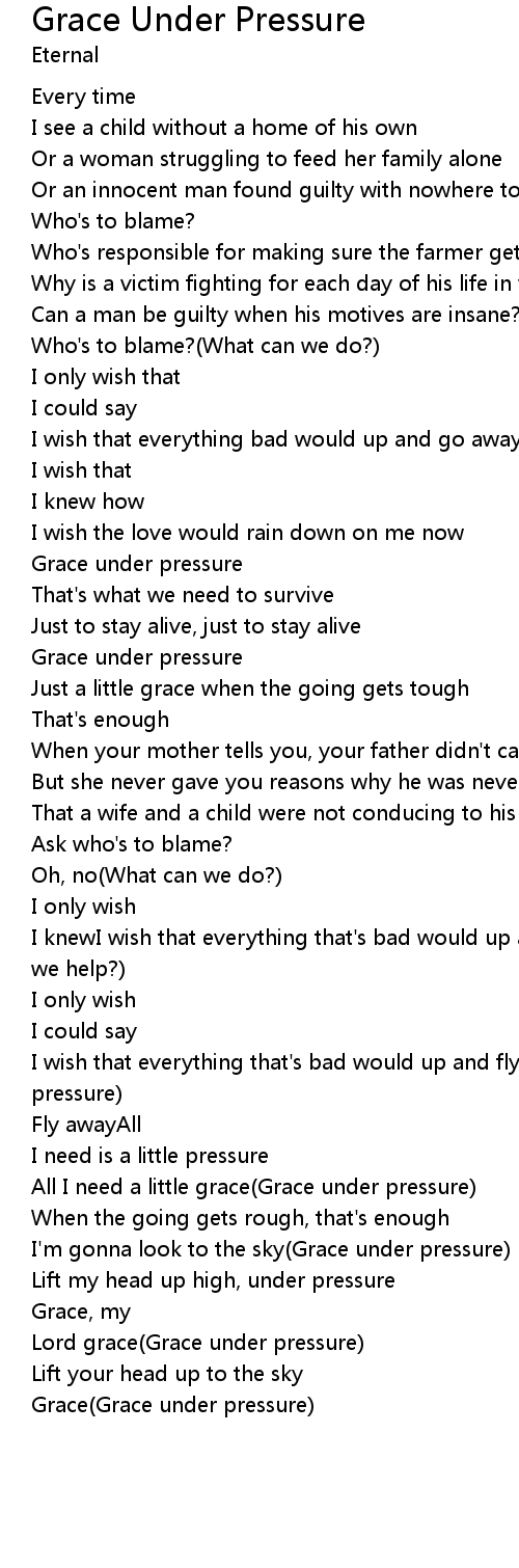 I wish that everything that's bad would up and fly, fly away(Grace under pressure) |