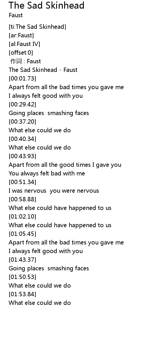 | [00:00.23] | The Sad Skinhead Faust |