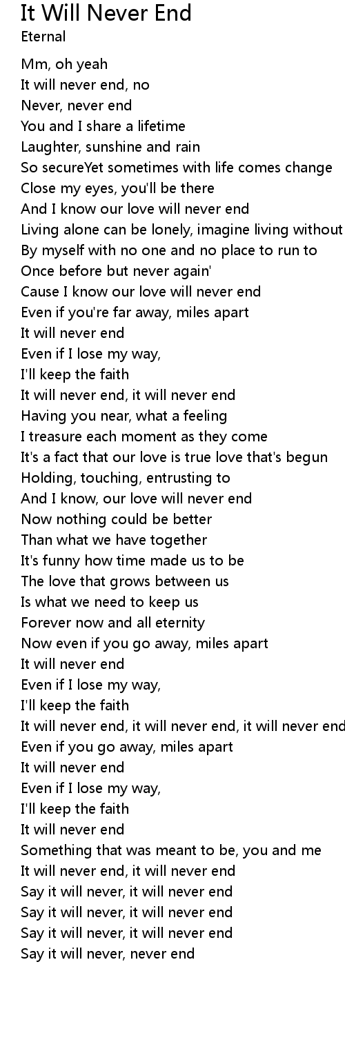 Never, never end |
