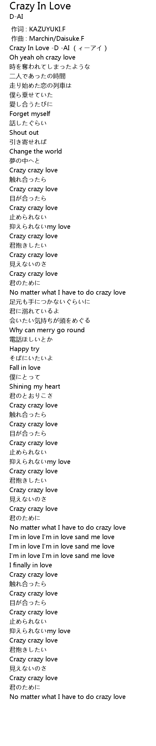 | [00:00.00] | Crazy In Love -D -AI (ィーアイ) |