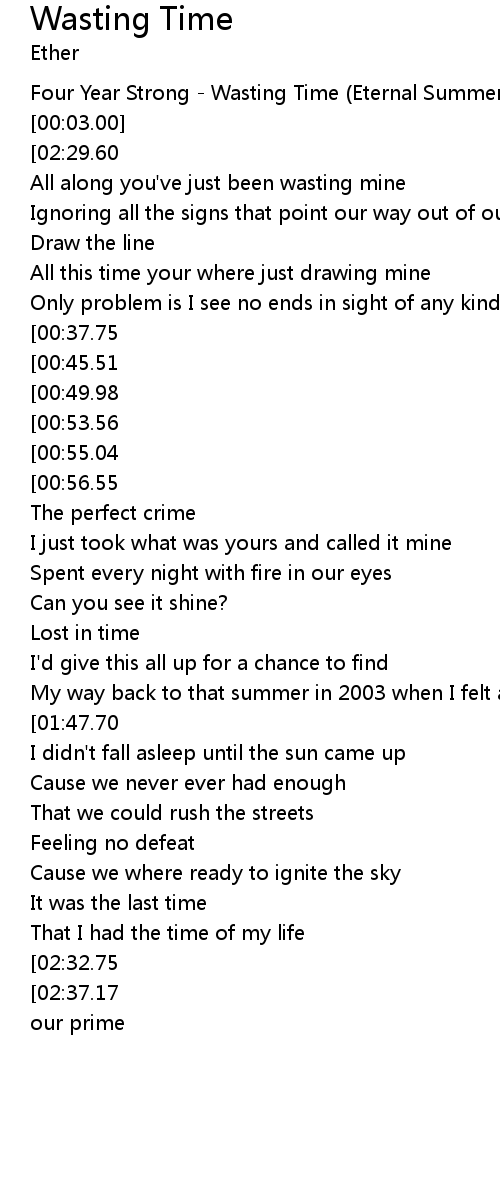 | [00:02.00] | Four Year Strong - Wasting Time (Eternal Summer) |