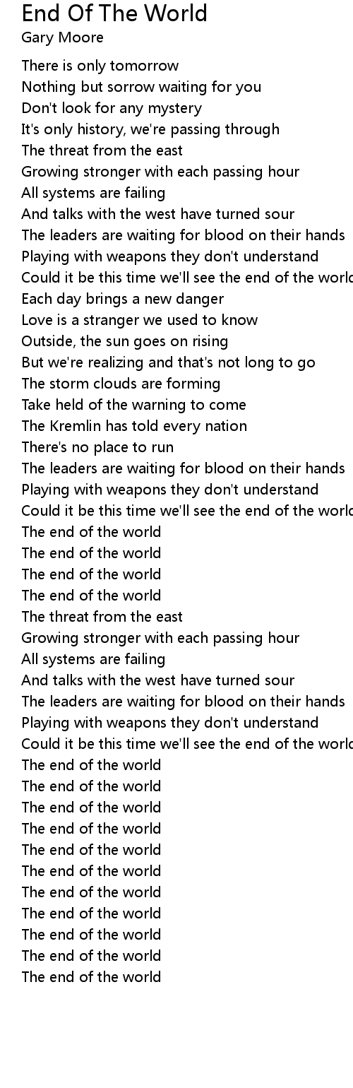 Could it be this time we'll see the end of the world |