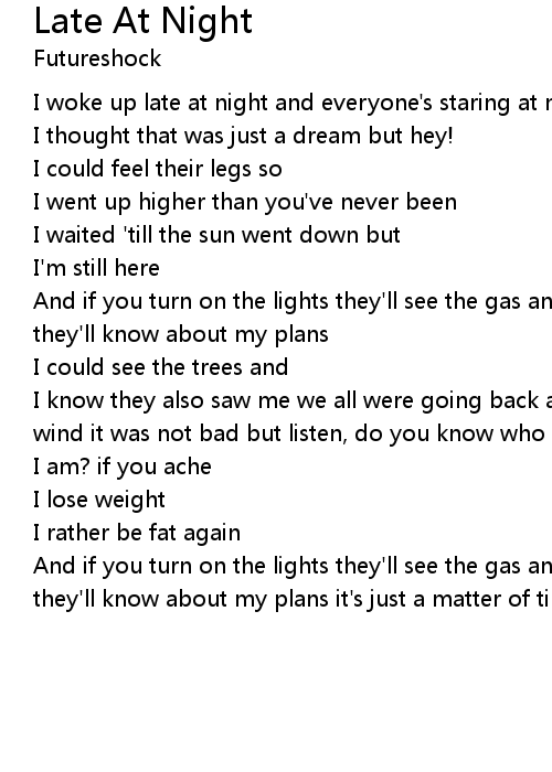 And if you turn on the lights they'll see the gas and if you turn on the lights they'll know about my plans it's just a matter of time that they are back