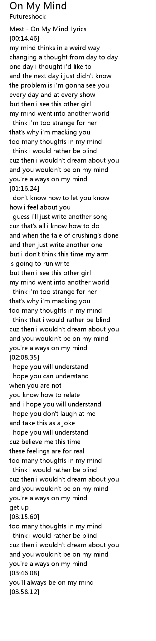 Mest - On My Mind Lyrics |