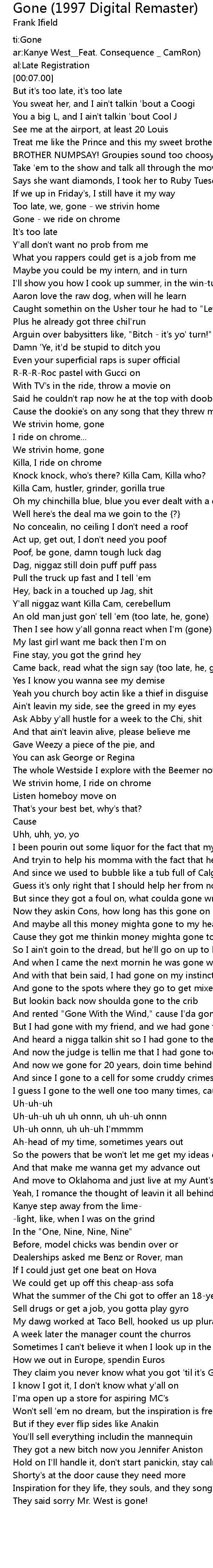 [00:03.00] ar:Kanye West__Feat. Consequence _ CamRon)