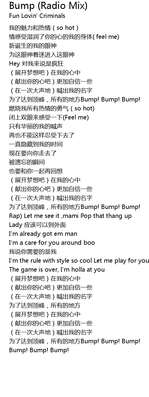 | [00:48.03] | 为了达到顶峰,所有的地方Bump! Bump! Bump! |