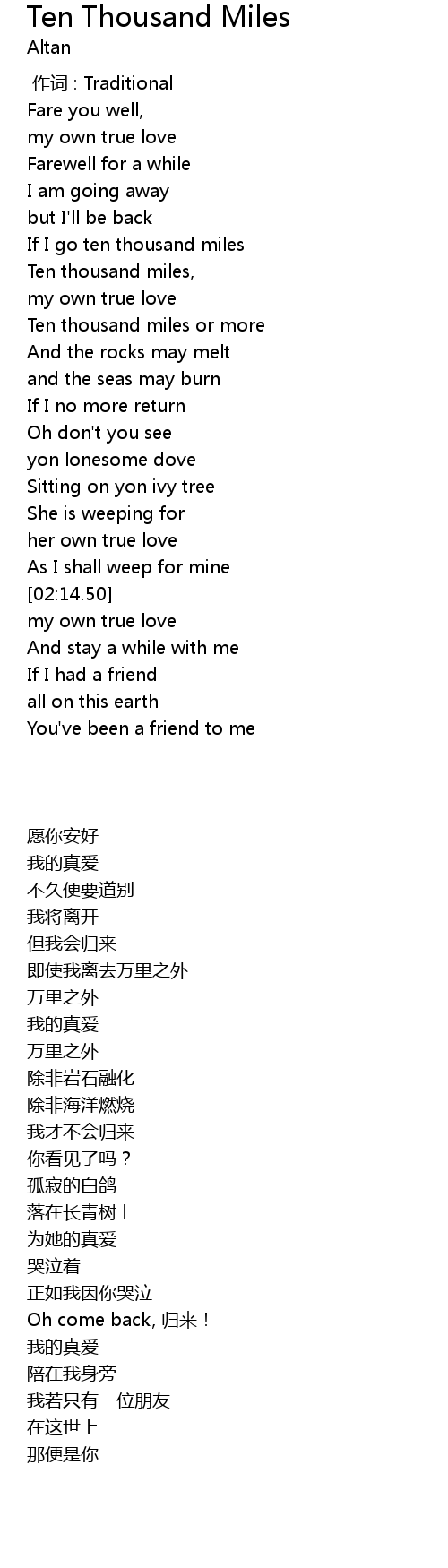 | [00:37.77] | If I go ten thousand miles |