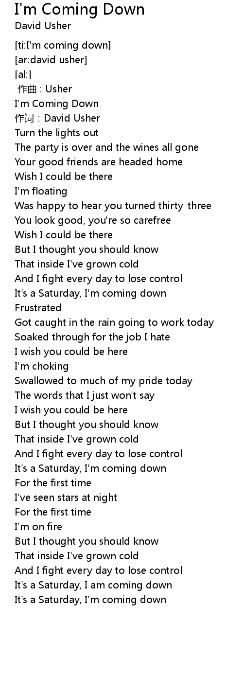 | [01:10.88] | It's a Saturday, I'm coming down |