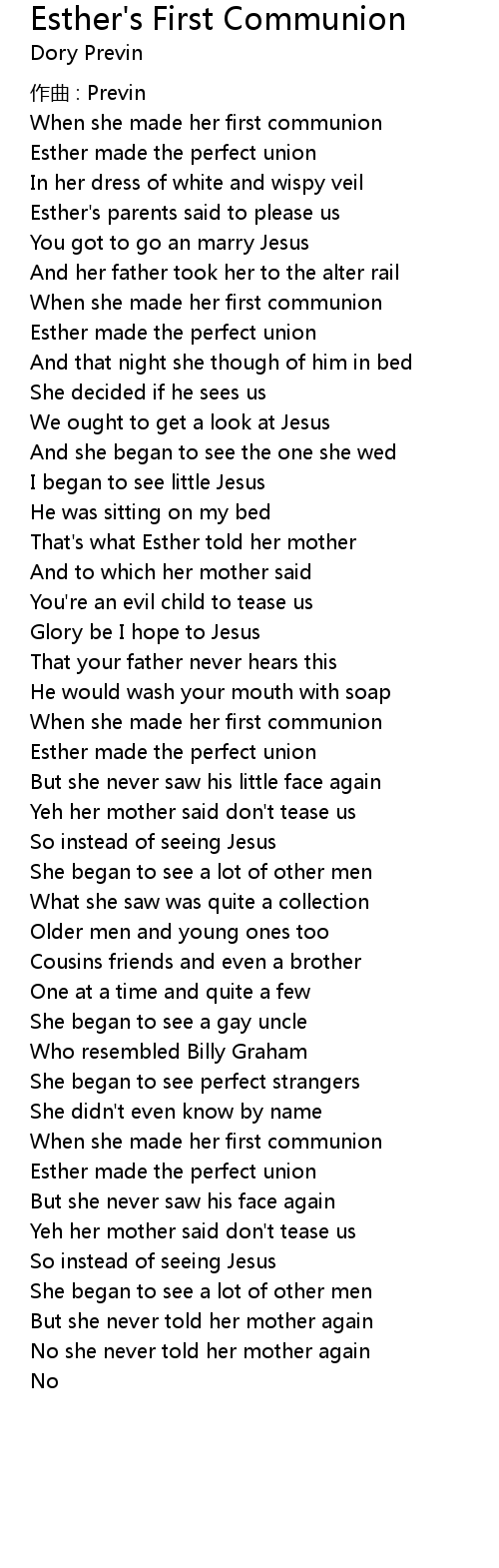| Song | Esther's First Communion |